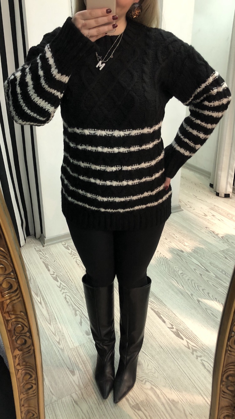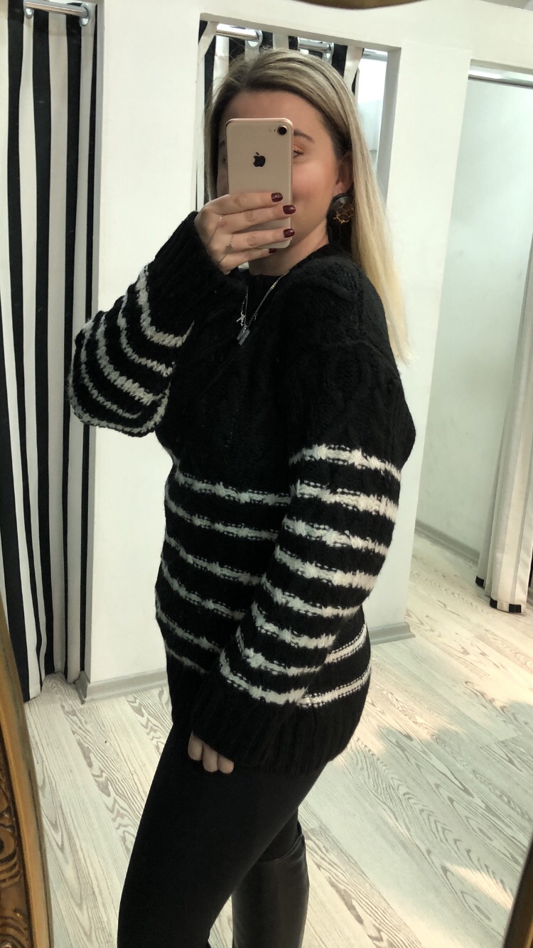 KREM SİYAH ÇİZGİ DETAYLI KAZAK
