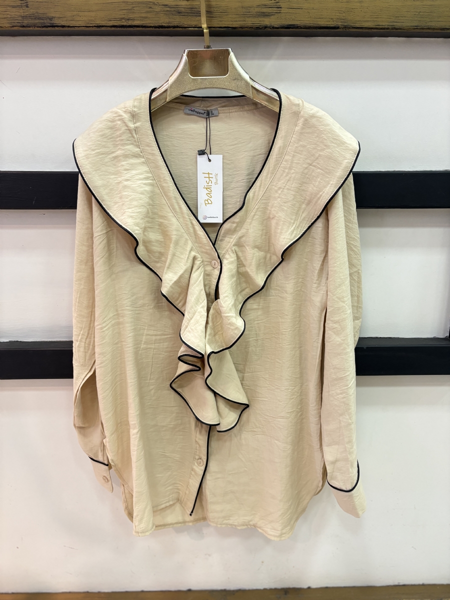 BEYAZ SİM ÇİZGİLİ CROP GÖMLEK